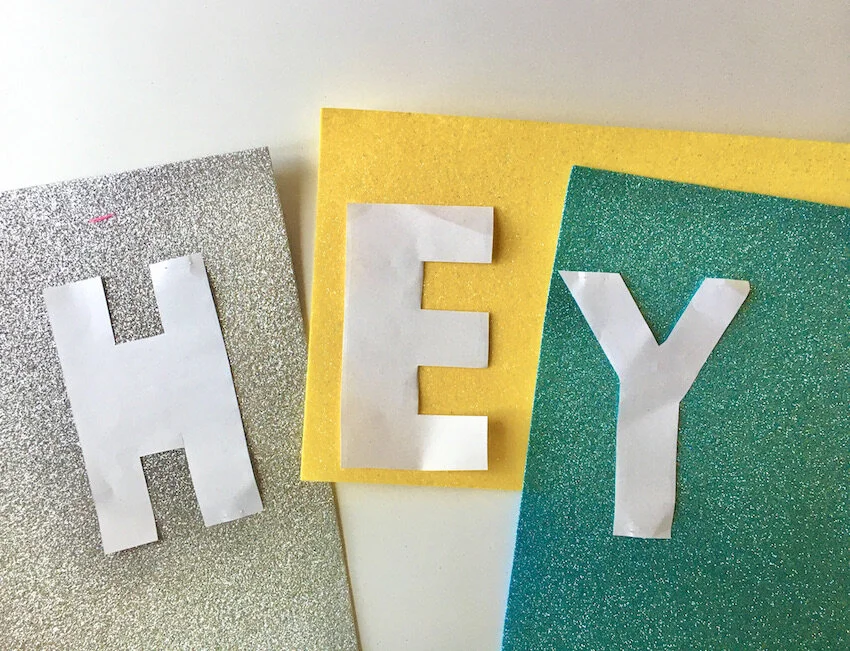 1.Cut 2 pieces out of each pattern you designed from your glitter felt. Make sure they are relatively enlarged, so they can hold a phone, bank cards, keys etc..the dimensions I have used: heart 15 * 16 cm, lips 14 * 24 cm, letters around 15 cm in height and 9 cm in width.
